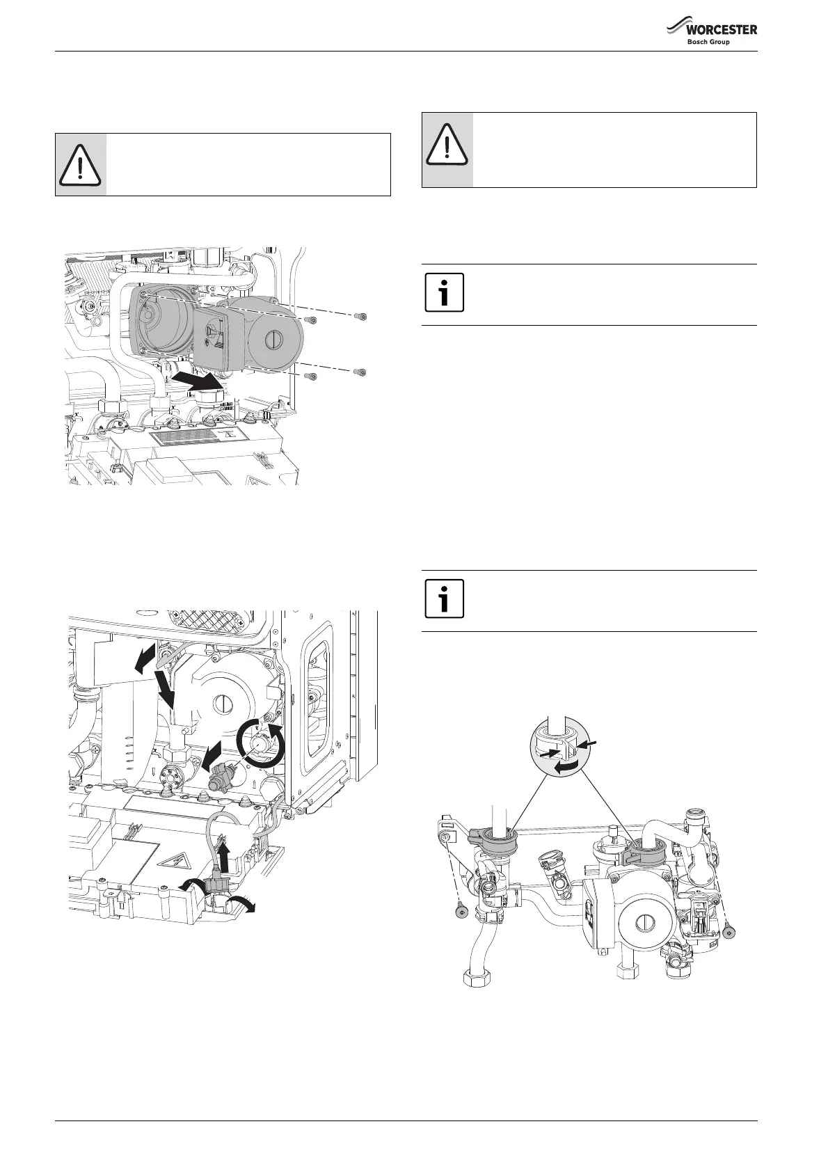 ▶ Undo the nuts securing the copper water pipes to the manifold (there