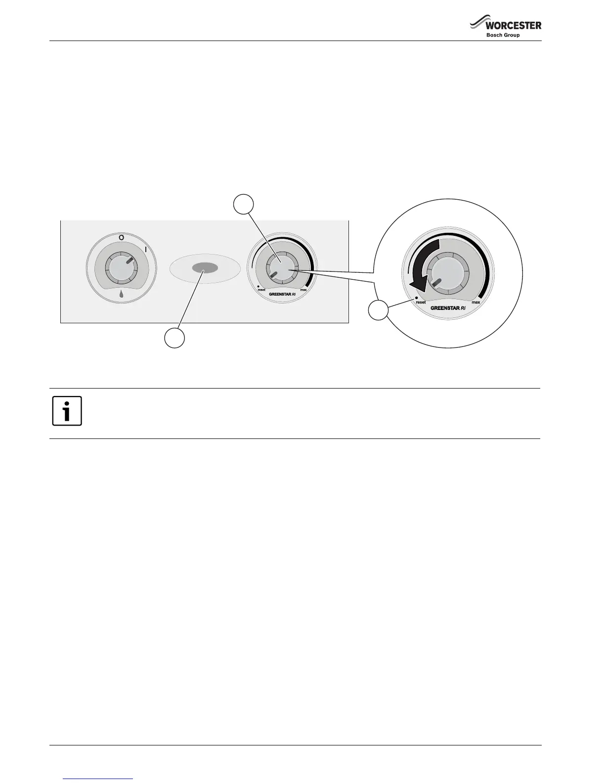 ▶ When the boiler resets the mains indicator [3] will no longer be flashing and the boiler will function normally, dependant on the
