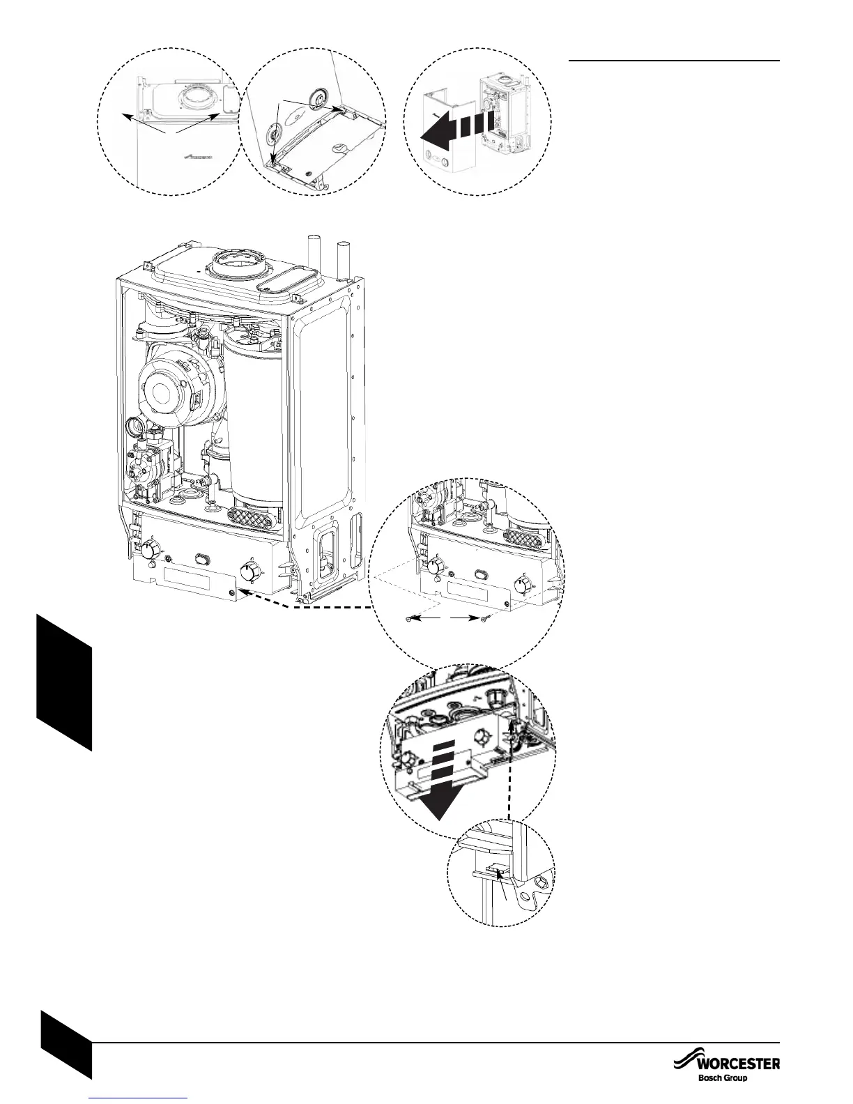 boiler casing at the top of the appliance.