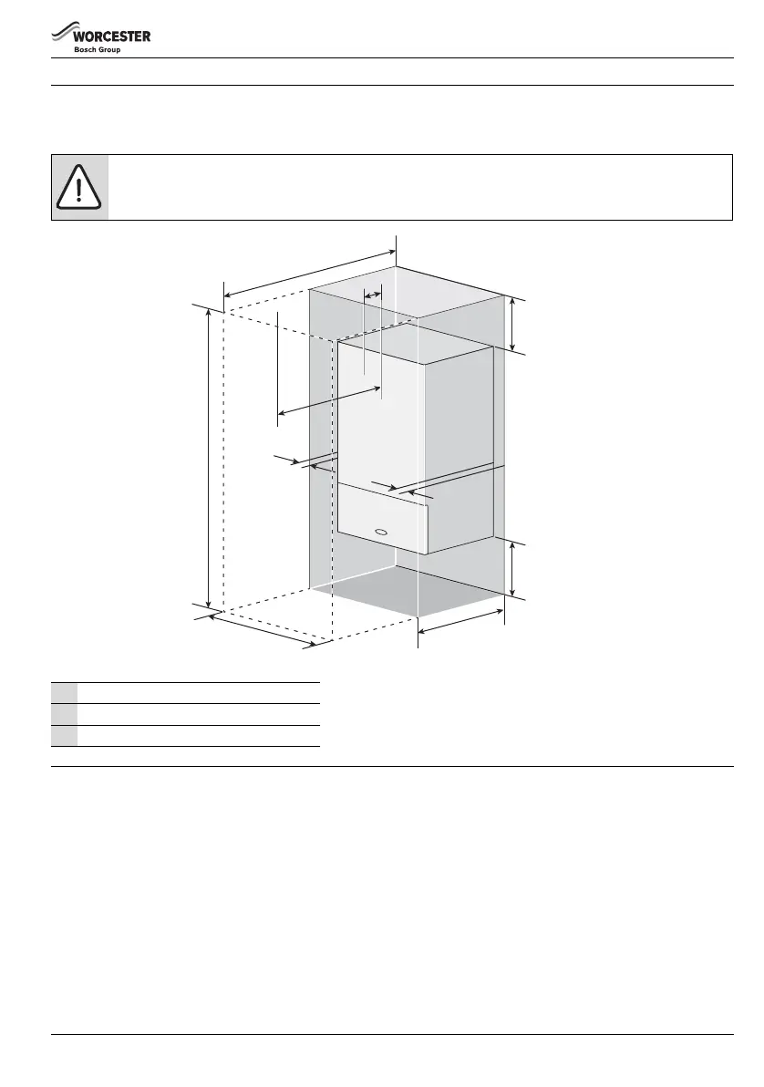 ▶ Do not restrict this space with the addition of cupboards, shelves etc. next to the boiler.