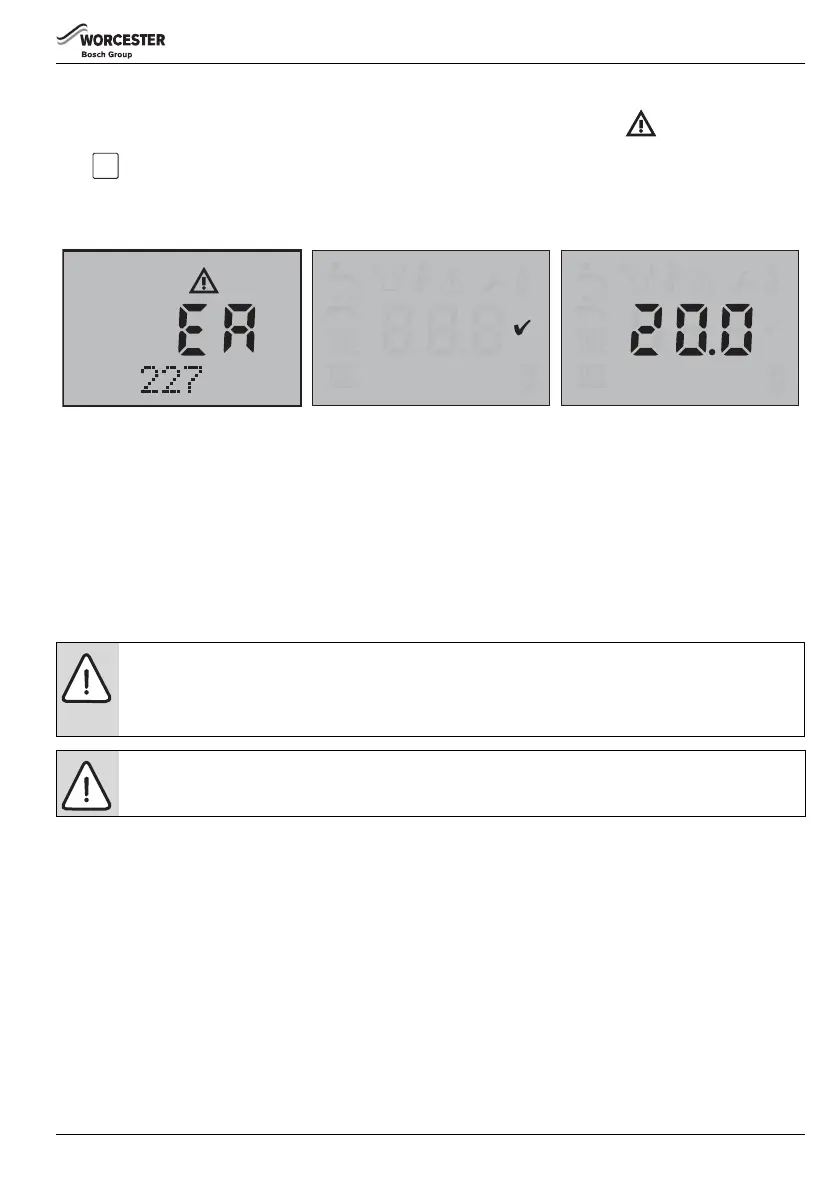 ▶ If the boiler does not restart, contact Worcester, Bosch Group Appointments Team on: 0844 892 3000.