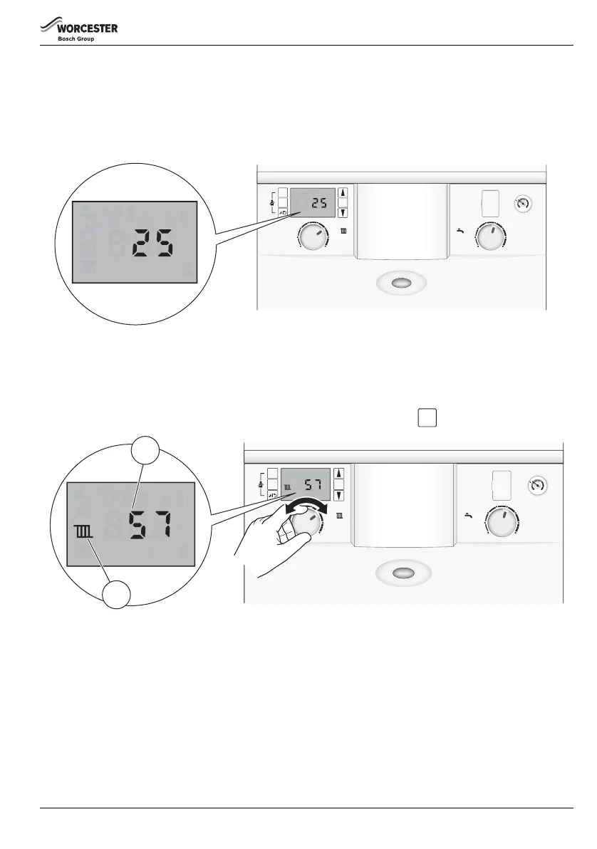 on the digital display. This is not the room temperature but the flow temperature through the radiators.