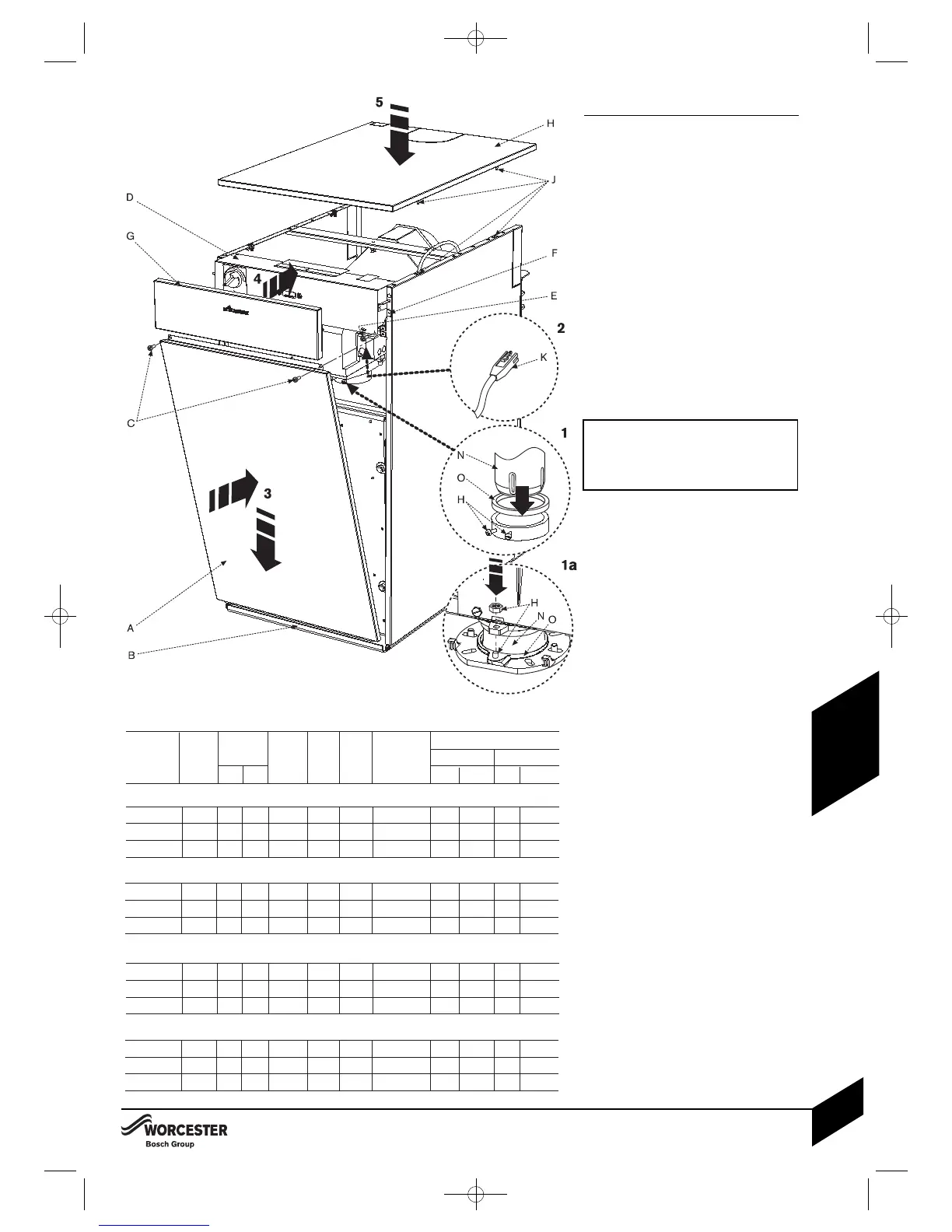 upper front panel (G) towards the boiler to