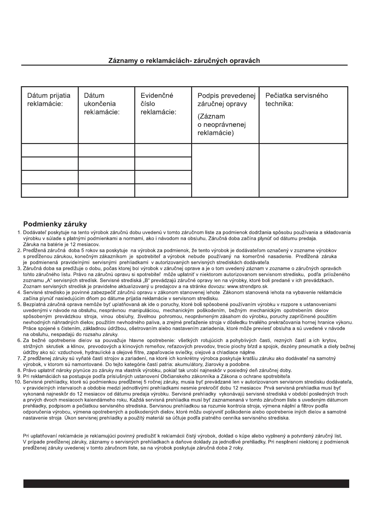 ZÁRUČNÝ A POZÁRUČNÝ SERVIS VYKONÁVA SPLNOMOCNENÝ ZÁSTUPCA VÝROBCU