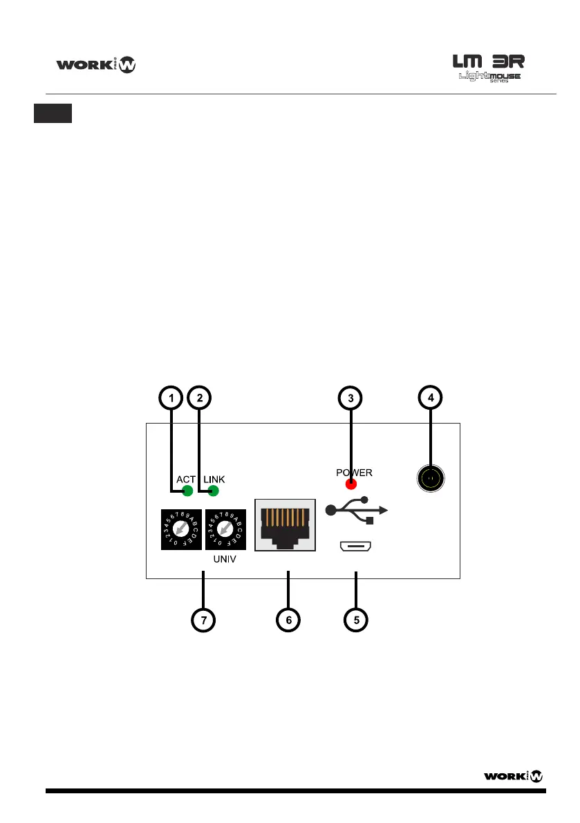 1. LED ACT: Este LED parpadea cuando el dispositivo detecta actividad en la red Ethernet.