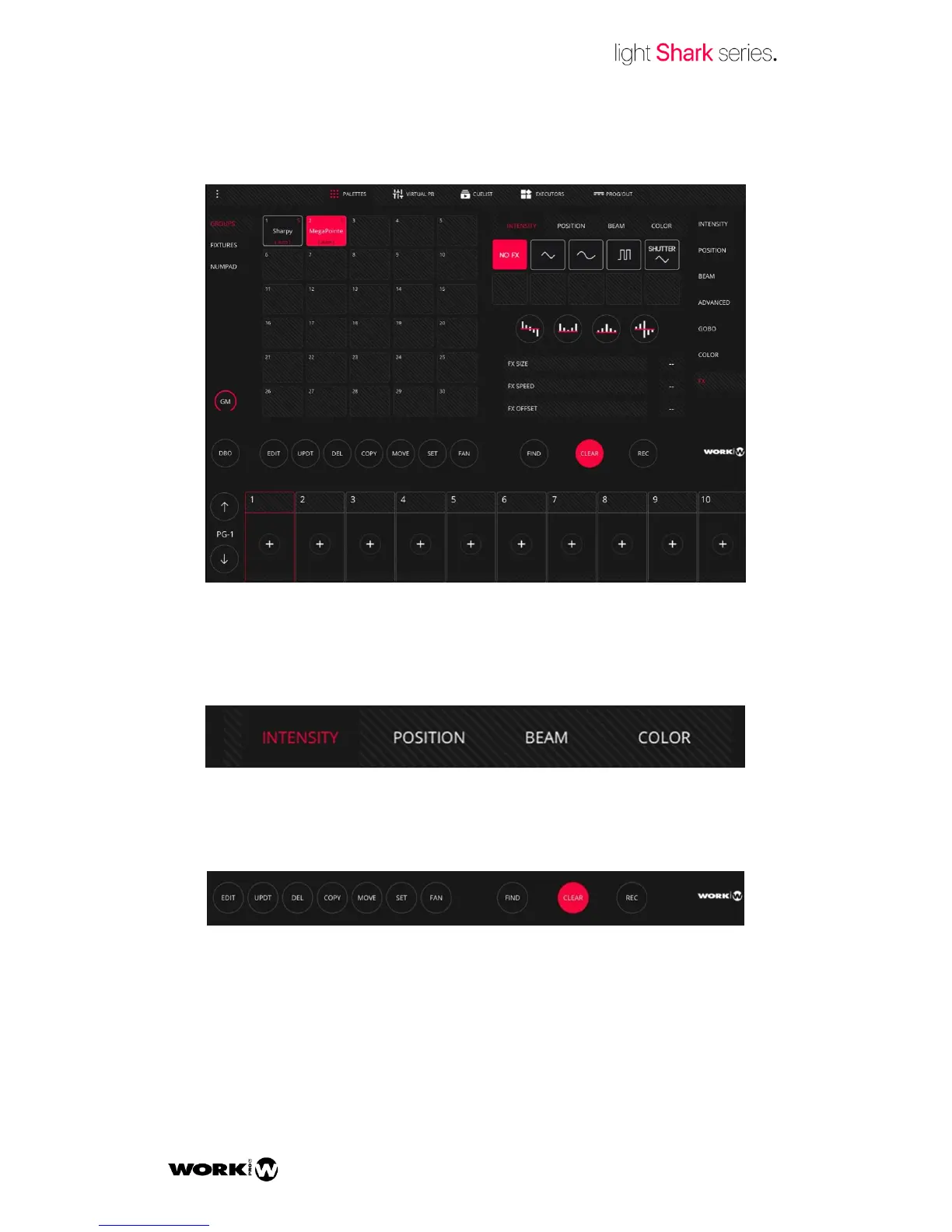 LightShark arranges the effects into 4 categories: Position, Colour, Beam and Intensity.