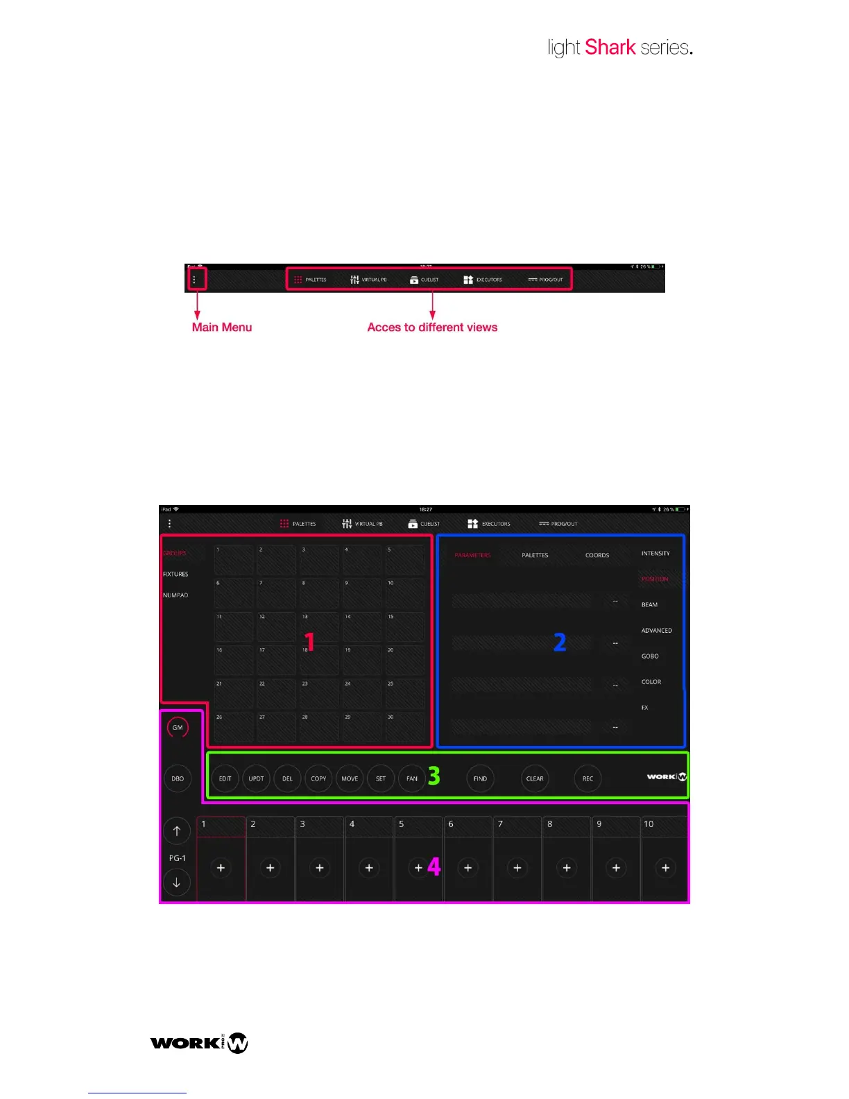 device parameters, to record scenes and to run the shows. The interface consists of 5