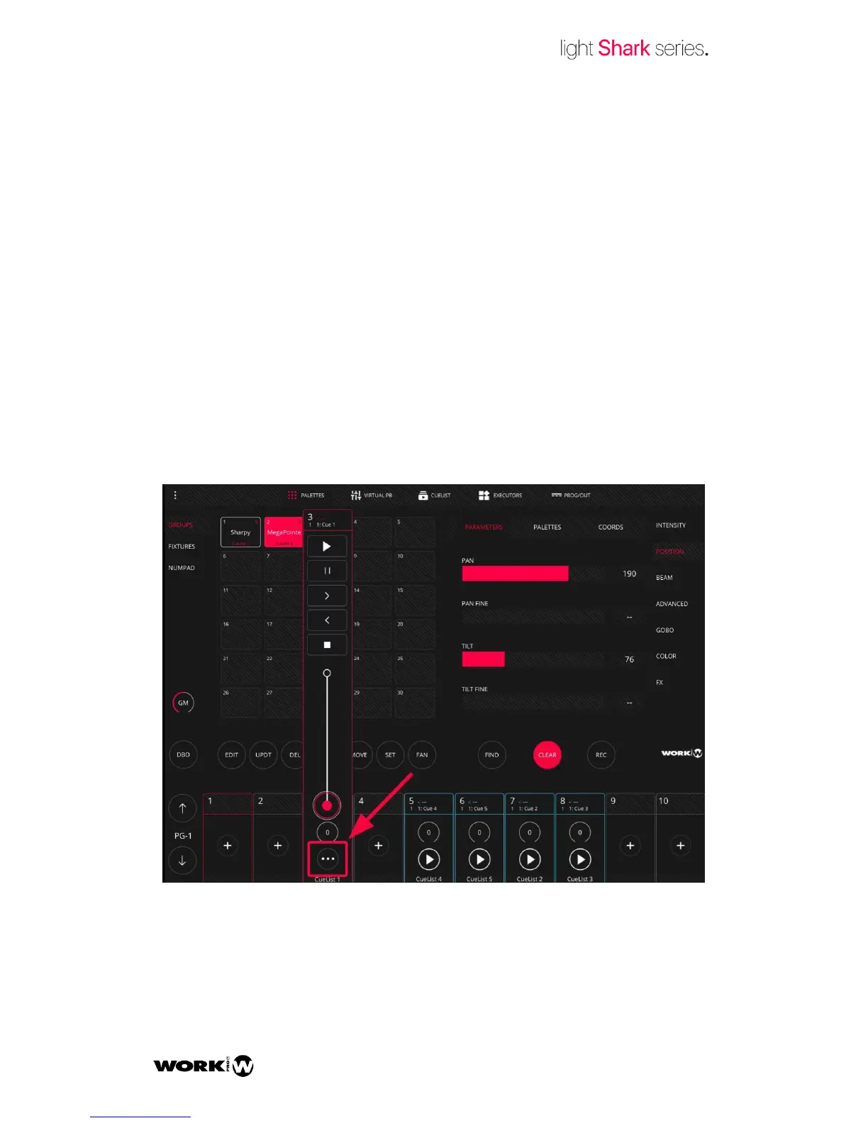 To play a Cuelist you only need to rise the fader on the Playback. LightShark is