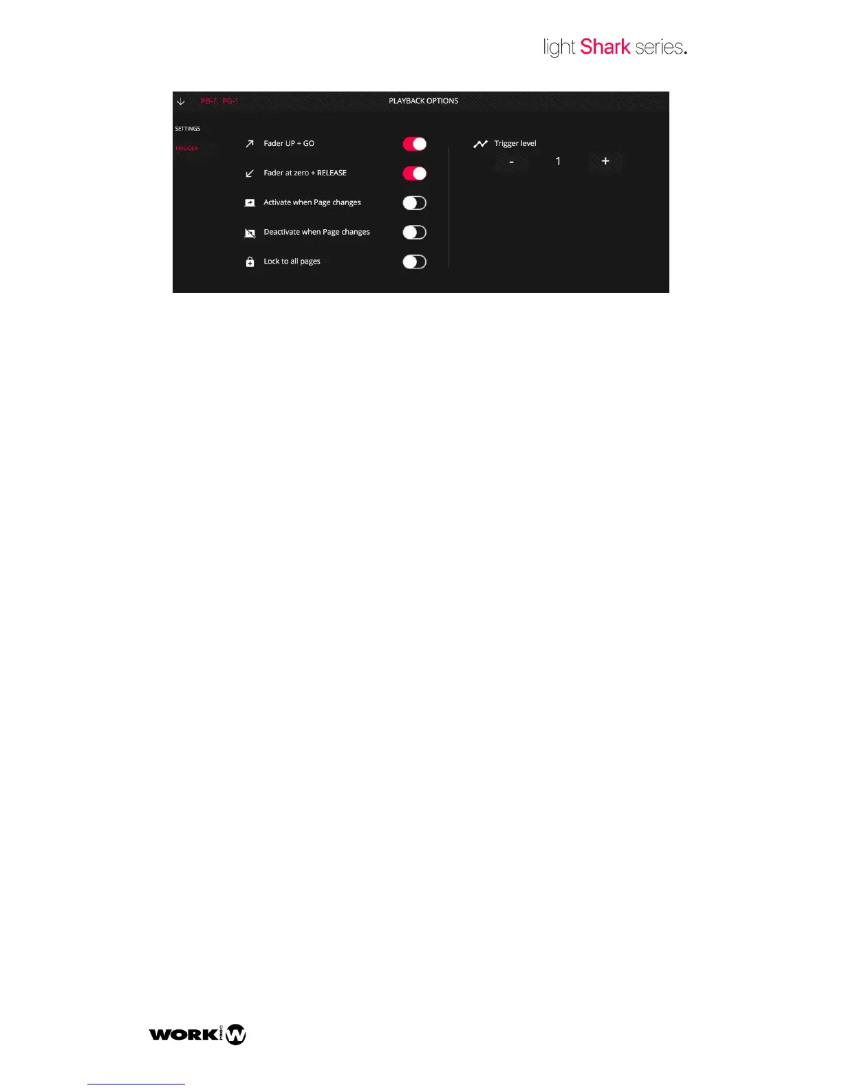 Fader UP+GO: when the fader exceeds the limit defined in the “trigger