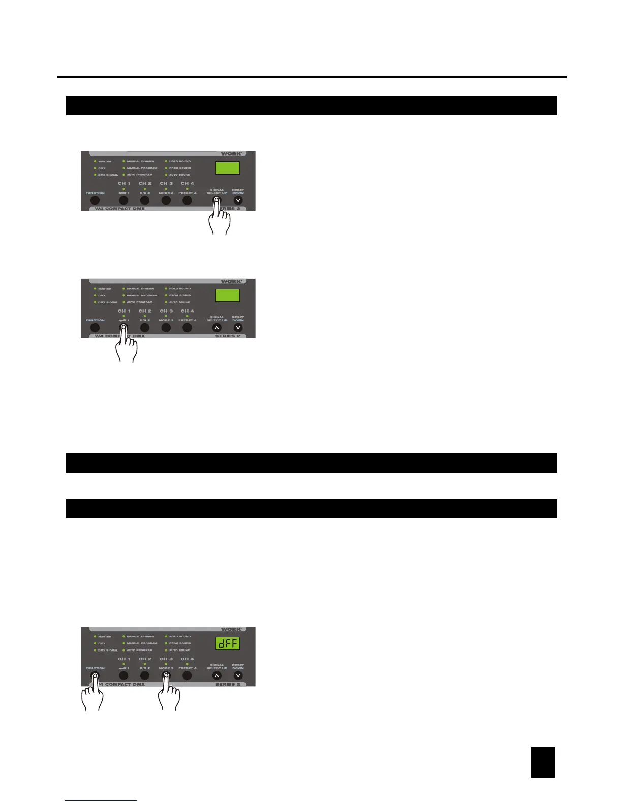 as a 4 channel DMX dimmer pack. The DMX Signal LED blinks when DMX signal