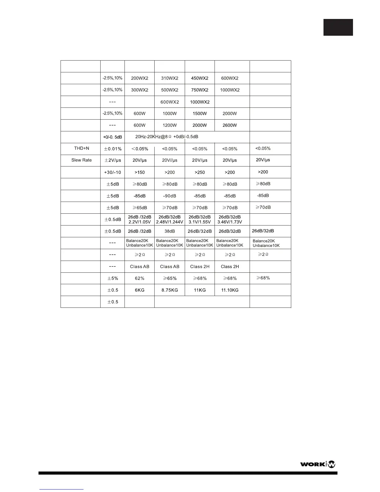 **, La potencia está testeada bajo la condición de 1 kHz, THD 1%, 40 ms burst.