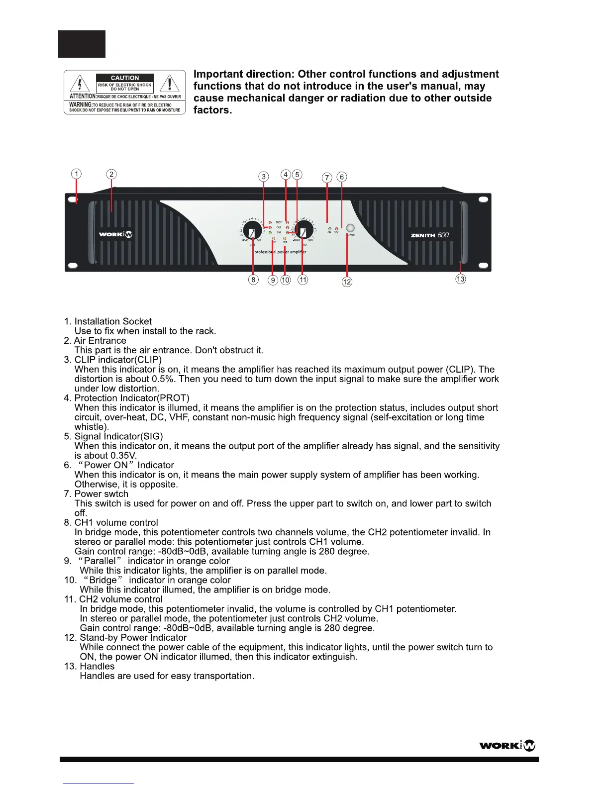 ZENITH 600, 1300, 1800, 2400, 6000 front panel function introduce