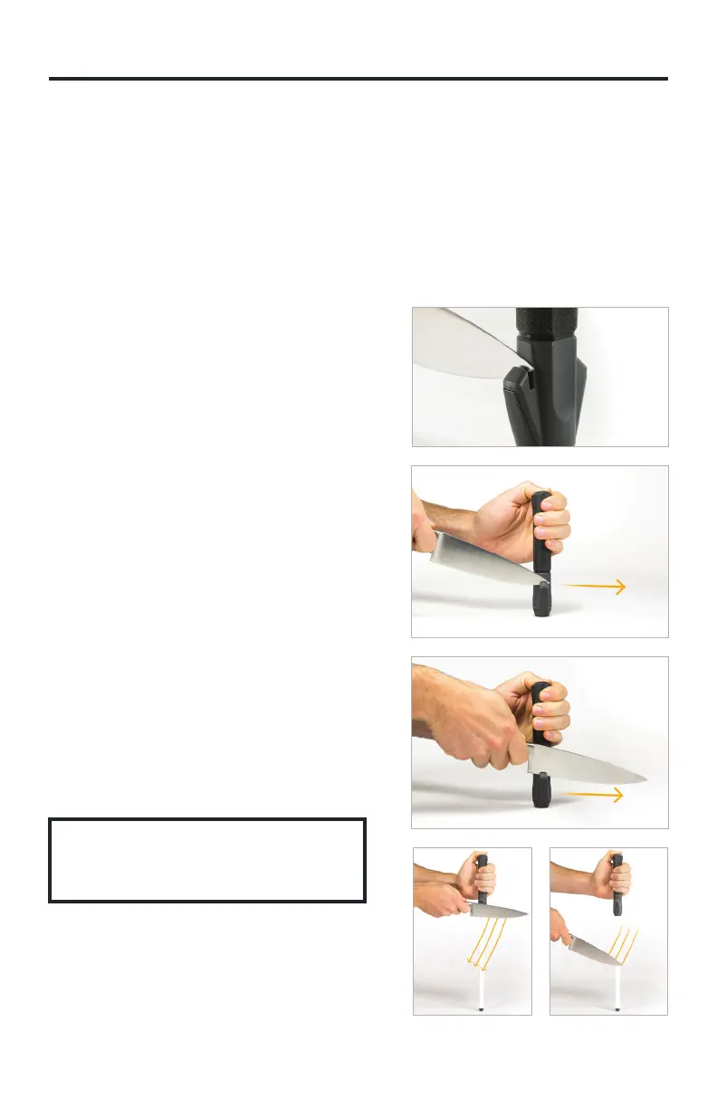 1. First sharpen your knife using the E5 sharpener.