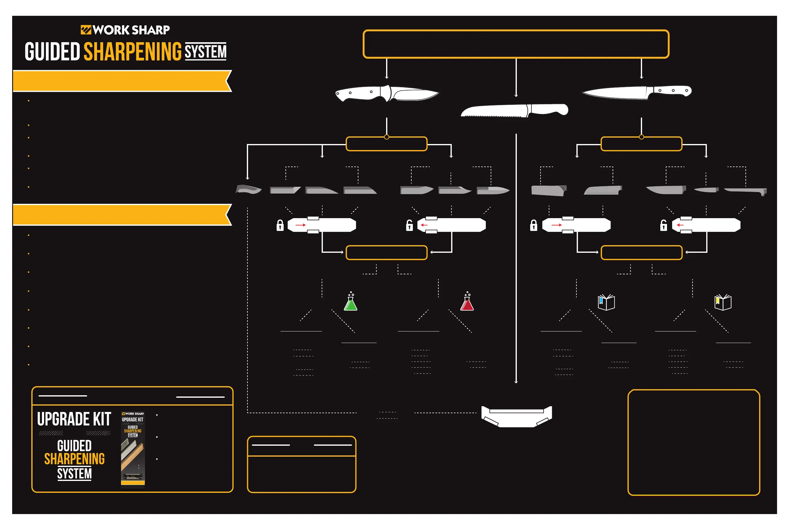 Sharpen Kitchen Cutlery at 17° and Pocket & Outdoor Knives at 20°.