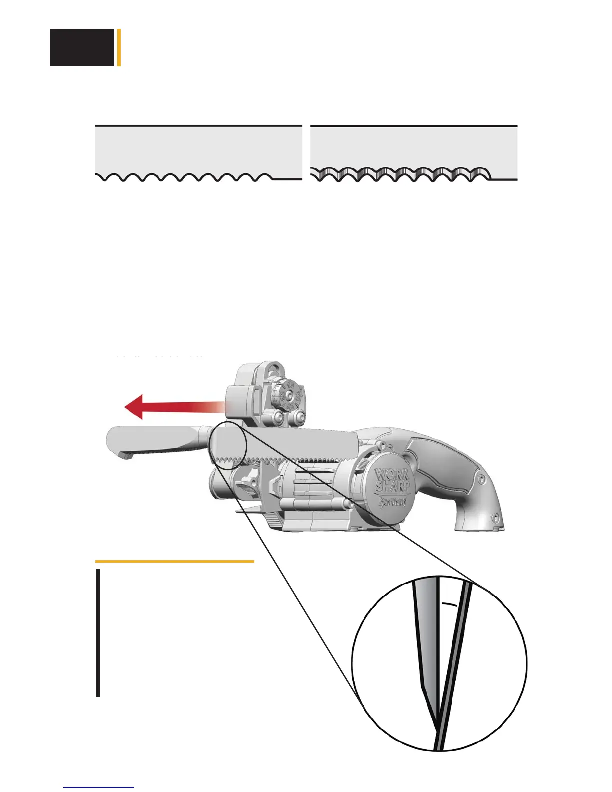 jusqu’à la pointe. Une lame de 8” (20,32 cm) devrait prendre 8 secondes.