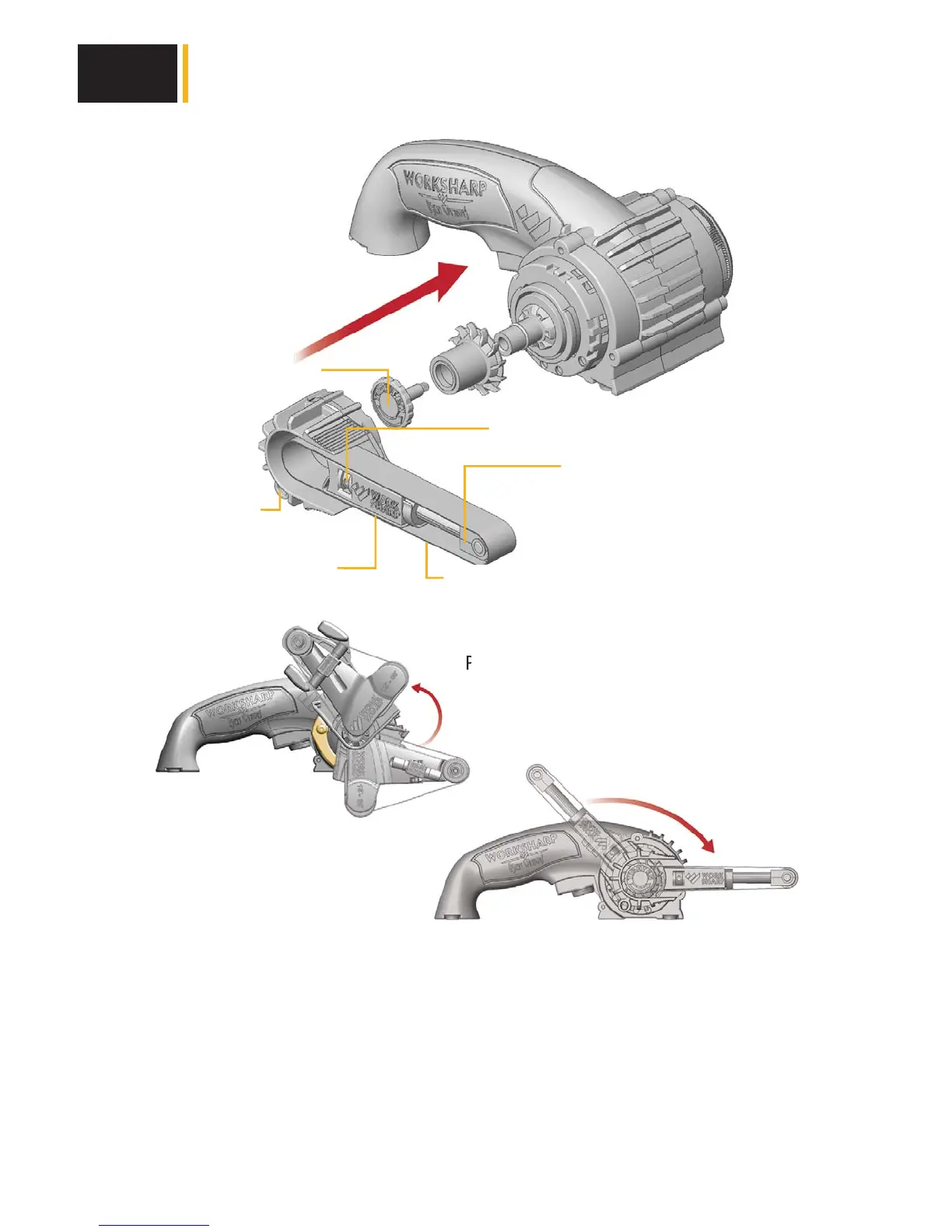 2. Installez l’accessoire de meulage d’outil en appuyant vers l’intérieur et en pivotant vers