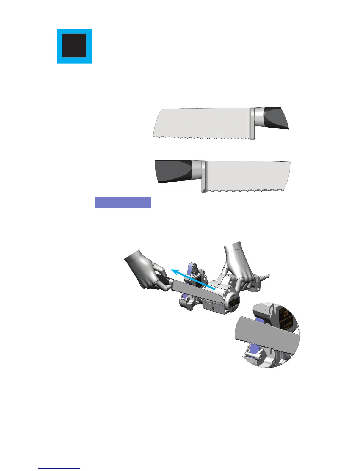 NOTEZ : la position correcte de la lame dentelée : les lames dentelées