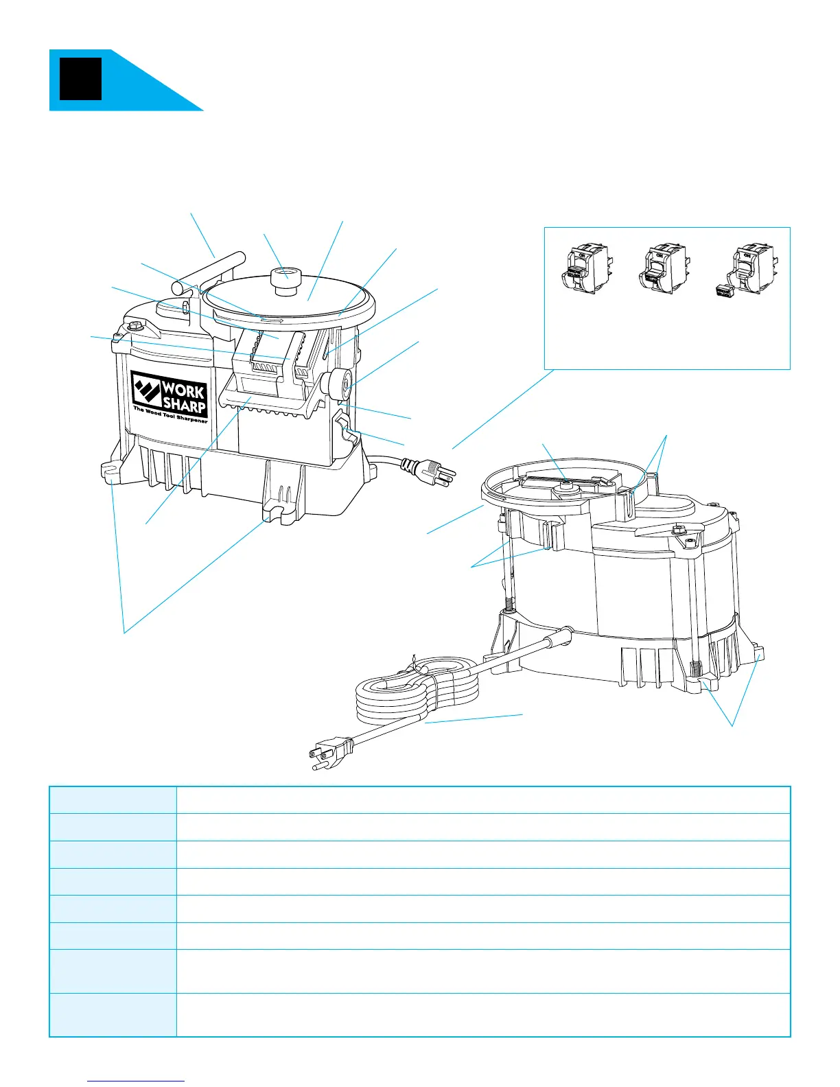 Cast-aluminum top; sheet-metal housing; impact and vibration-resistant, tool-grade plastic base