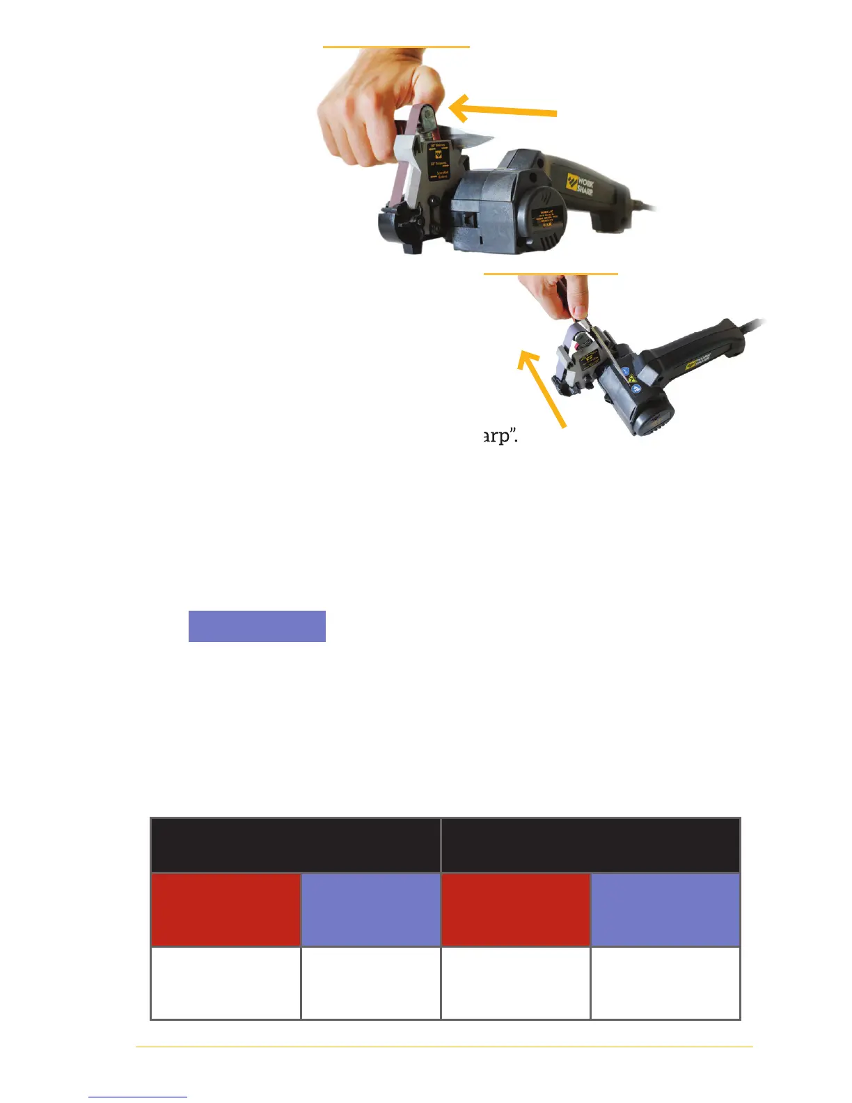 NOTE: When re-sharpening, use the red belt until you raise a burr