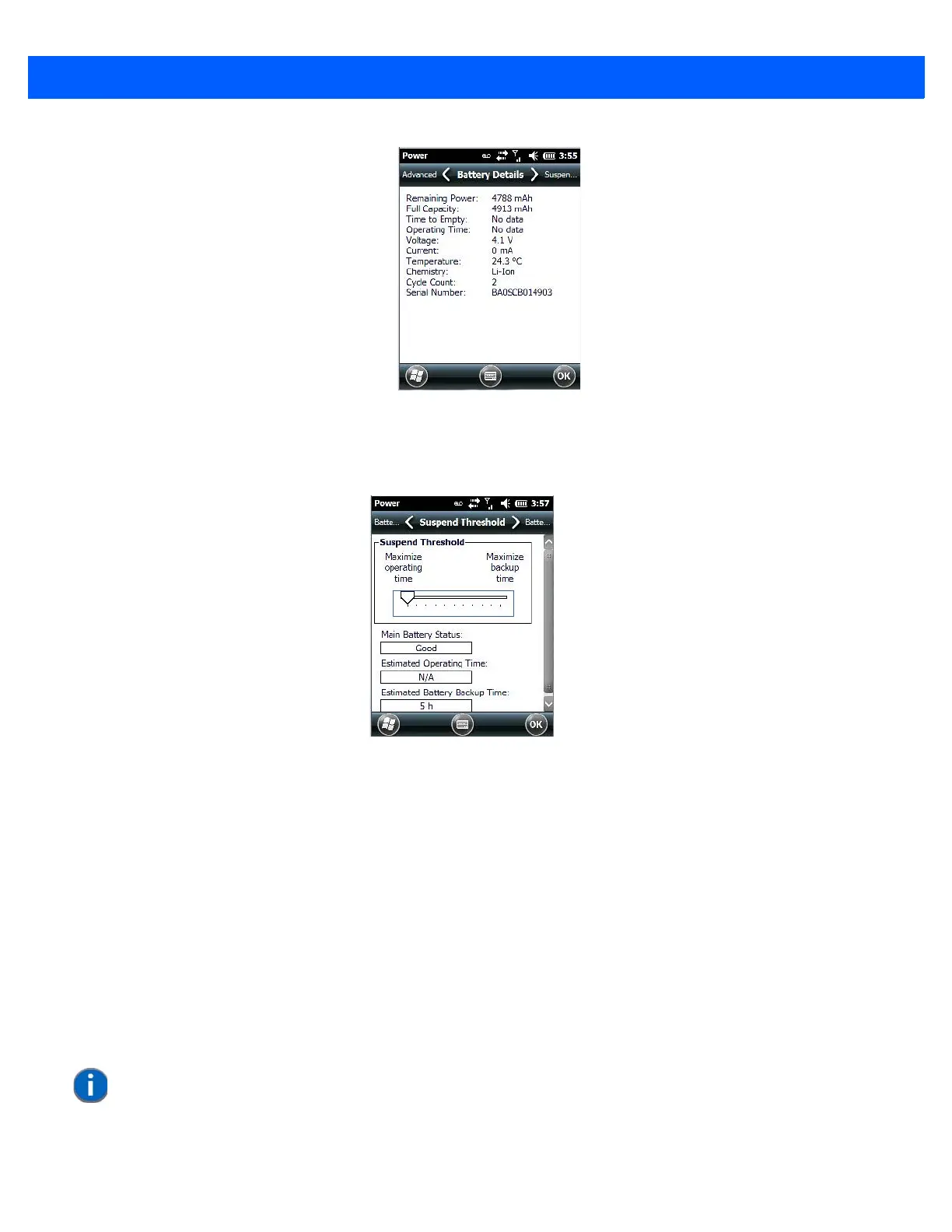 up to the Estimated Battery Backup Time reserve specified in the Suspend Threshold tab, the Workabout Pro4
