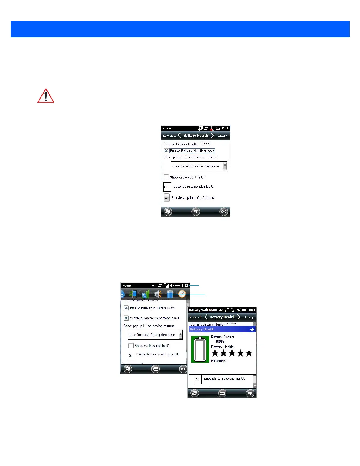 The Current Battery Health Meter default values are shown here as ***** (Excellent), *** (Used), and * (Battery