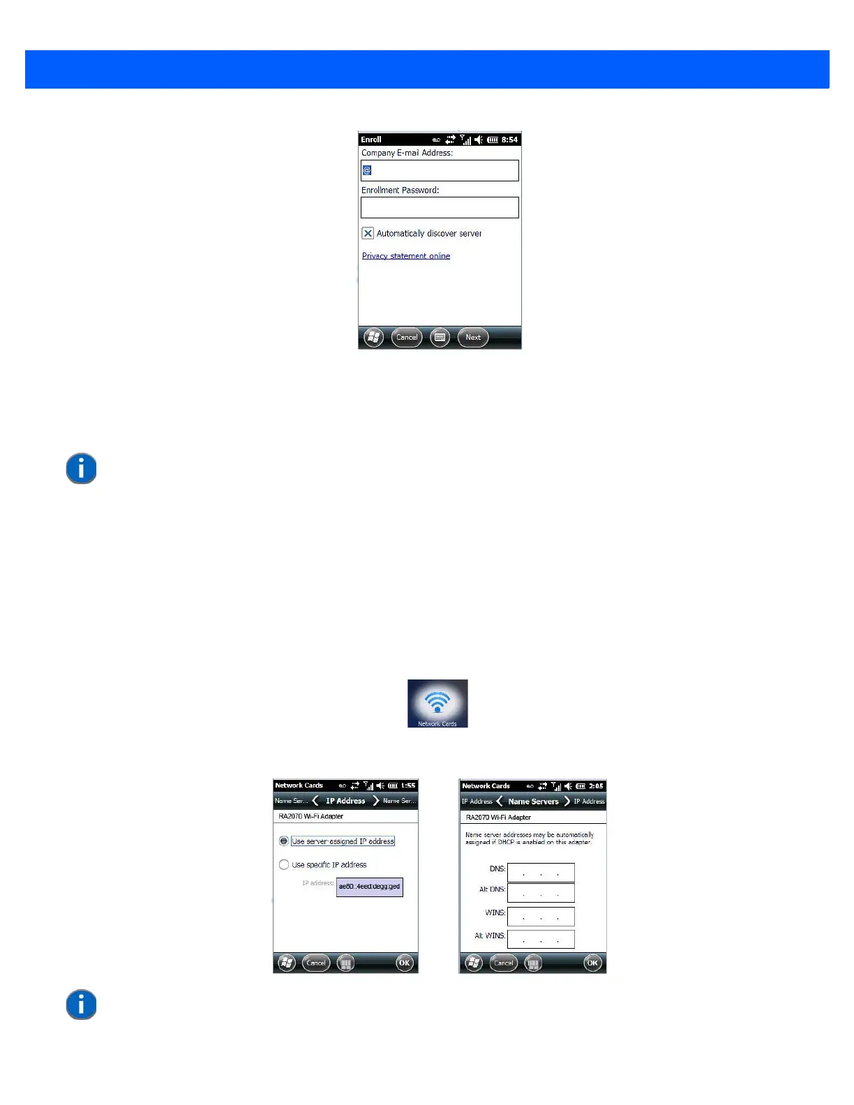 • Enter your enrollment password – supplied by your company's network administrator or generated from