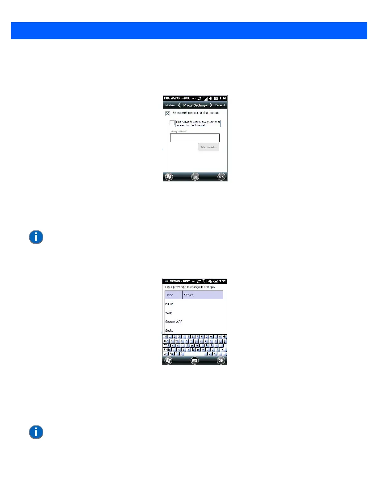 • Tap on the proxy type you want to change. For the appropriate server type, type the proxy server name