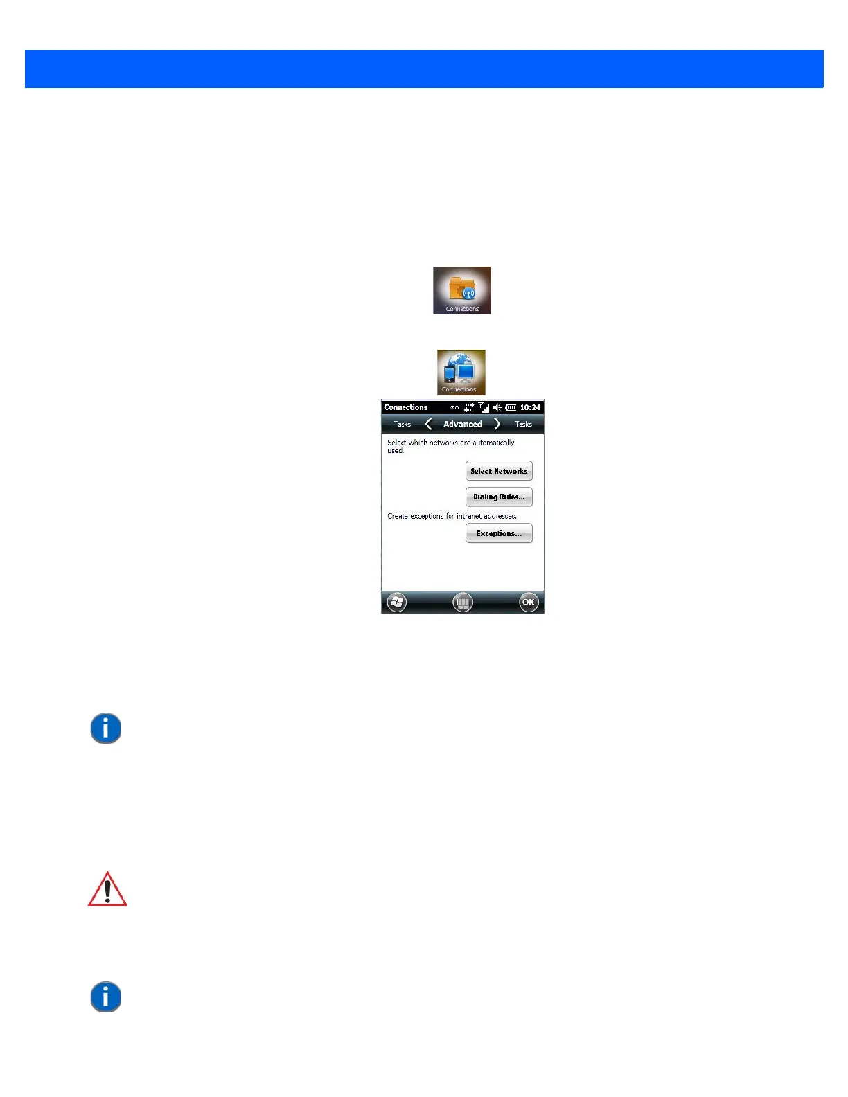 When you use programs such as Internet Explorer, your Workabout Pro4 automatically connects using private