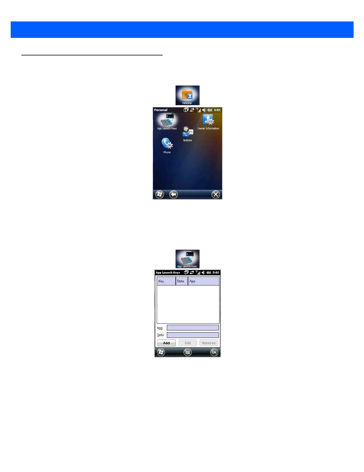 Workabout PRO4 - Personal Folder; App Launch Keys
