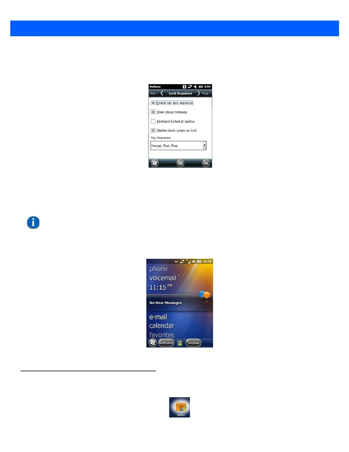 • To lock the keyboard, tap in the checkbox next to Enable key lock sequence.