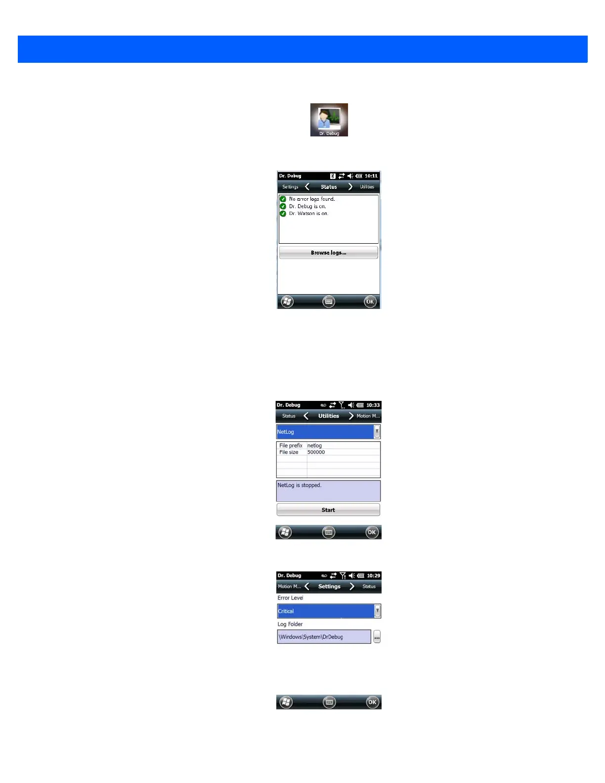 •Tap on Start>Settings>System. Tap on the Dr. Debug icon.