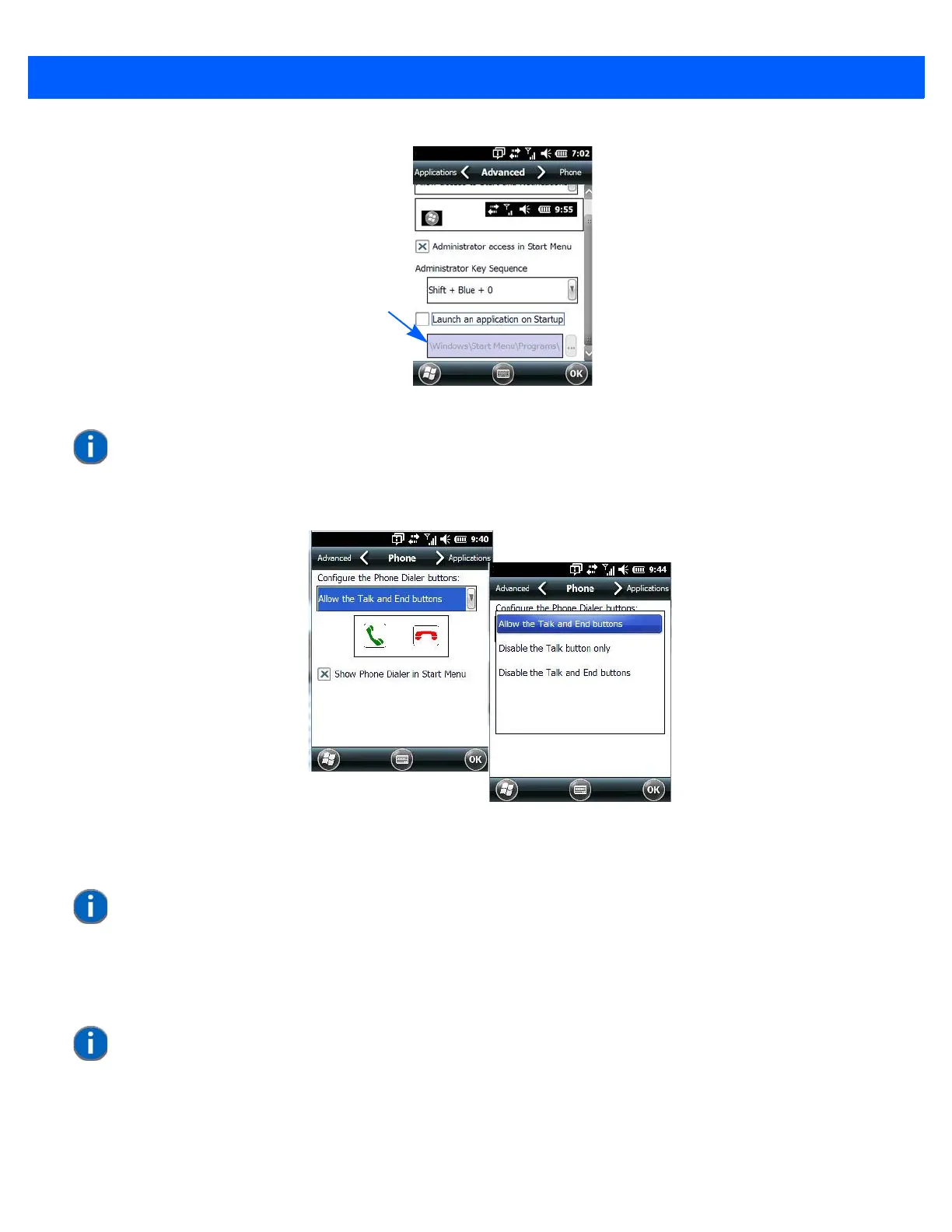 The Phone tab allows you to define the phone buttons accessibility on the Workabout Pro4 keyboard by
