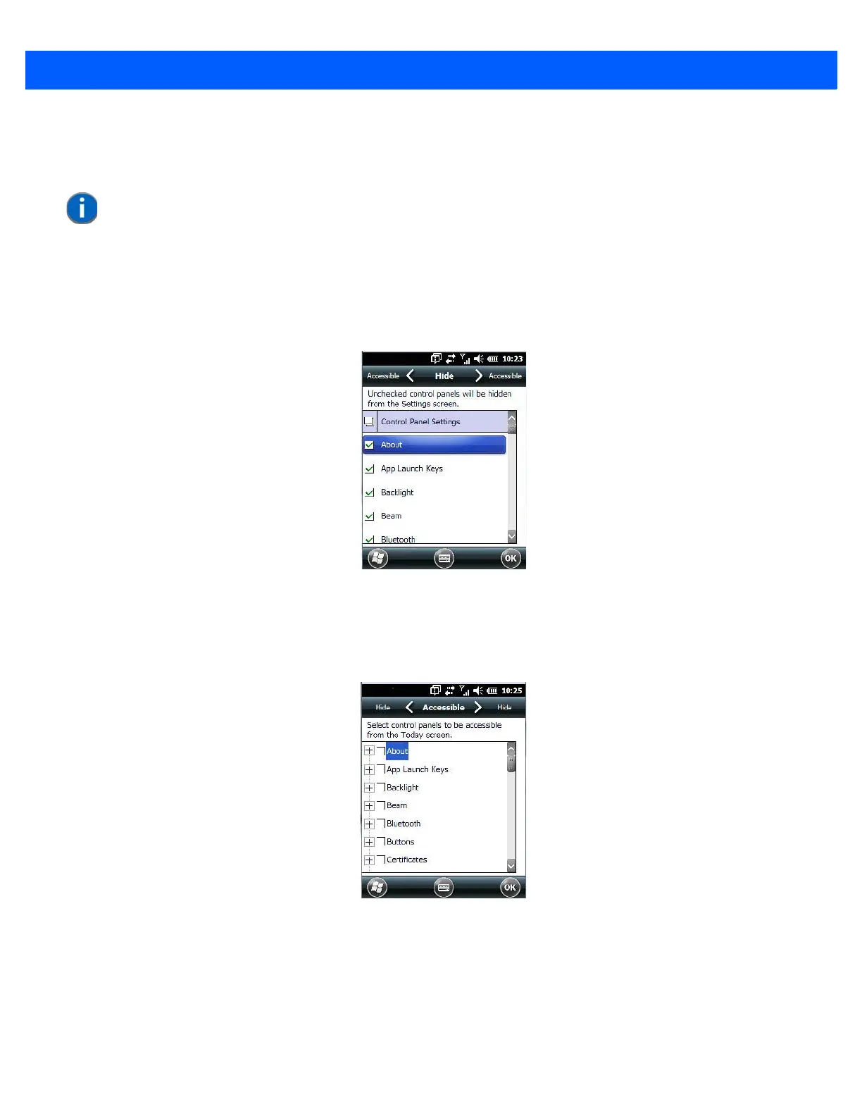 This options allows you to tailor items displayed in both the Settings screen and in the Today screen.