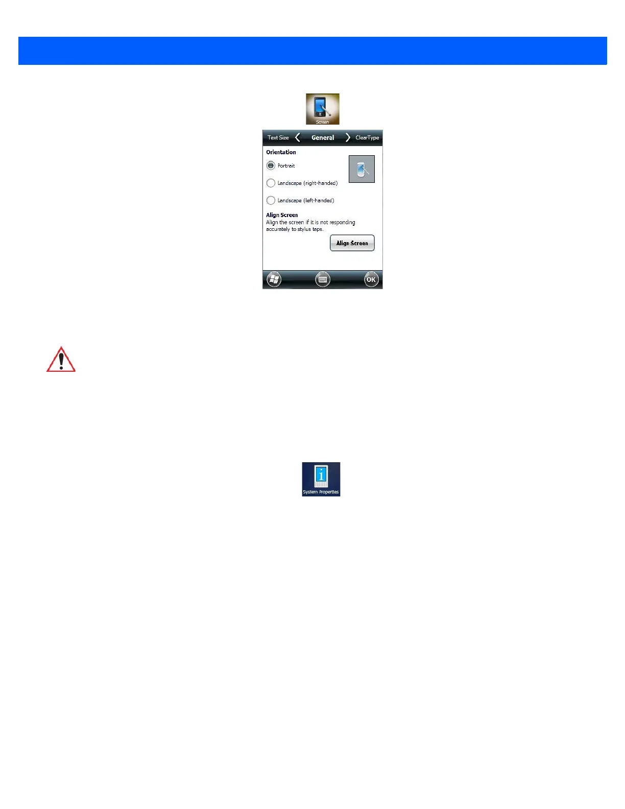 This icon allows you to align (calibrate) your touchscreen, turn ClearType on and off and adjust the size of the