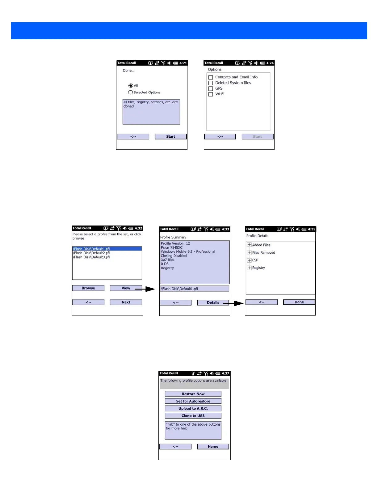 on the Next button to choose from options to restore or clone the profile. You can choose from four profile