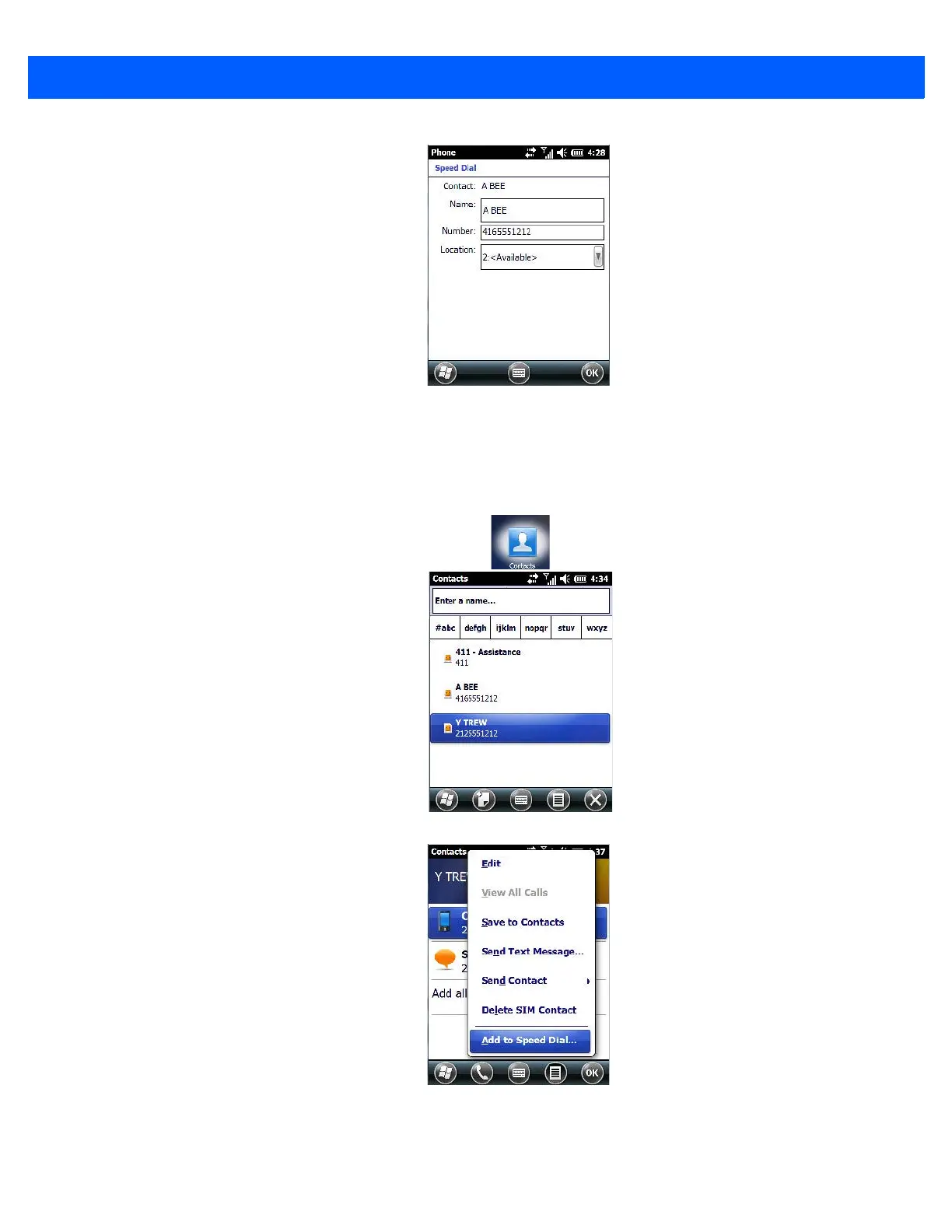 • In the Summary screen, tap on Menu>Add to Speed Dial.