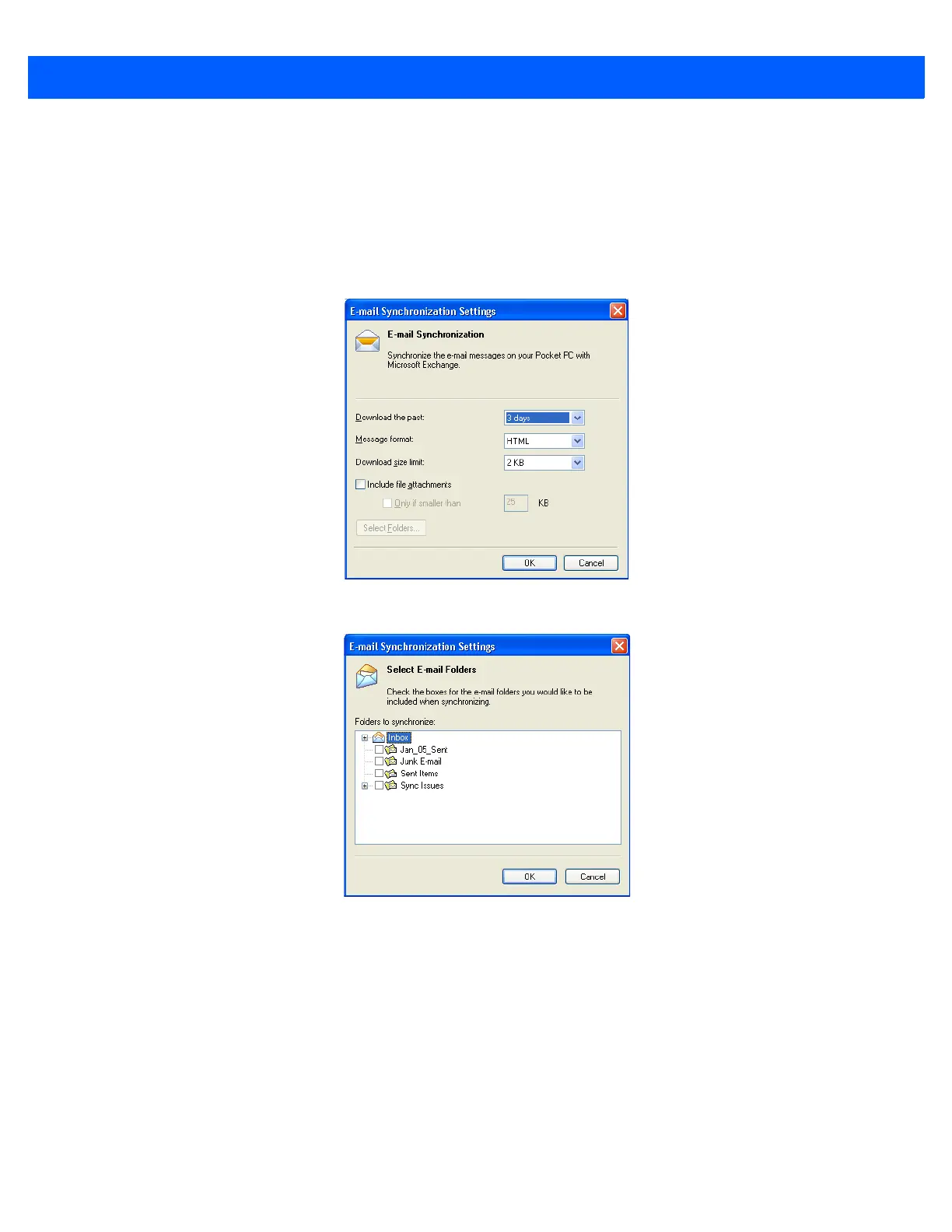 •In ActiveSync on your PC, double-tap the E-mail item in the Sync Options tab.