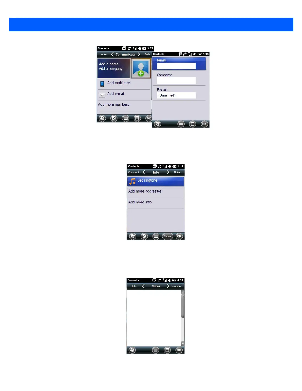 • When you’ve completed the information for the contact entry, tap on OK. The new contact is displayed in