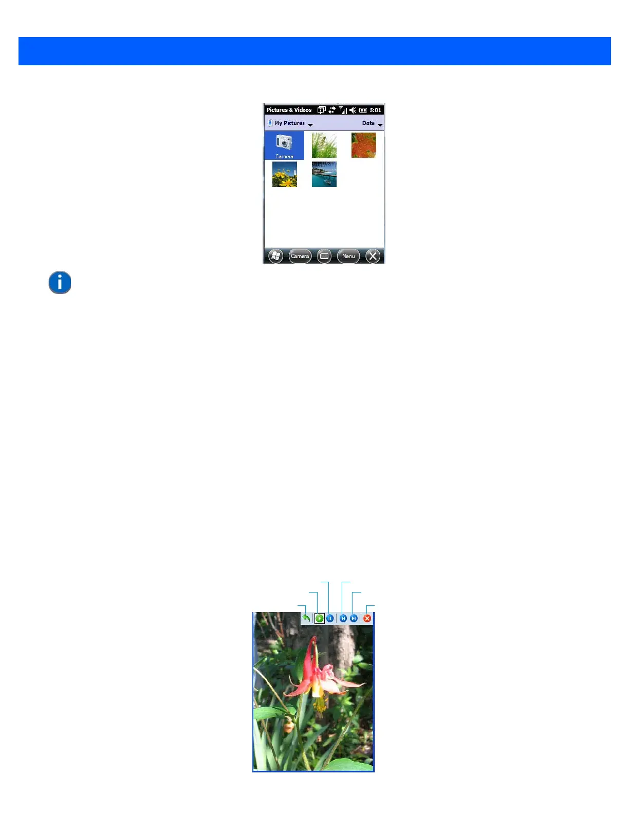 • Press and hold the stylus on the thumbnail photo you want to delete to display a pop-up menu. Tap