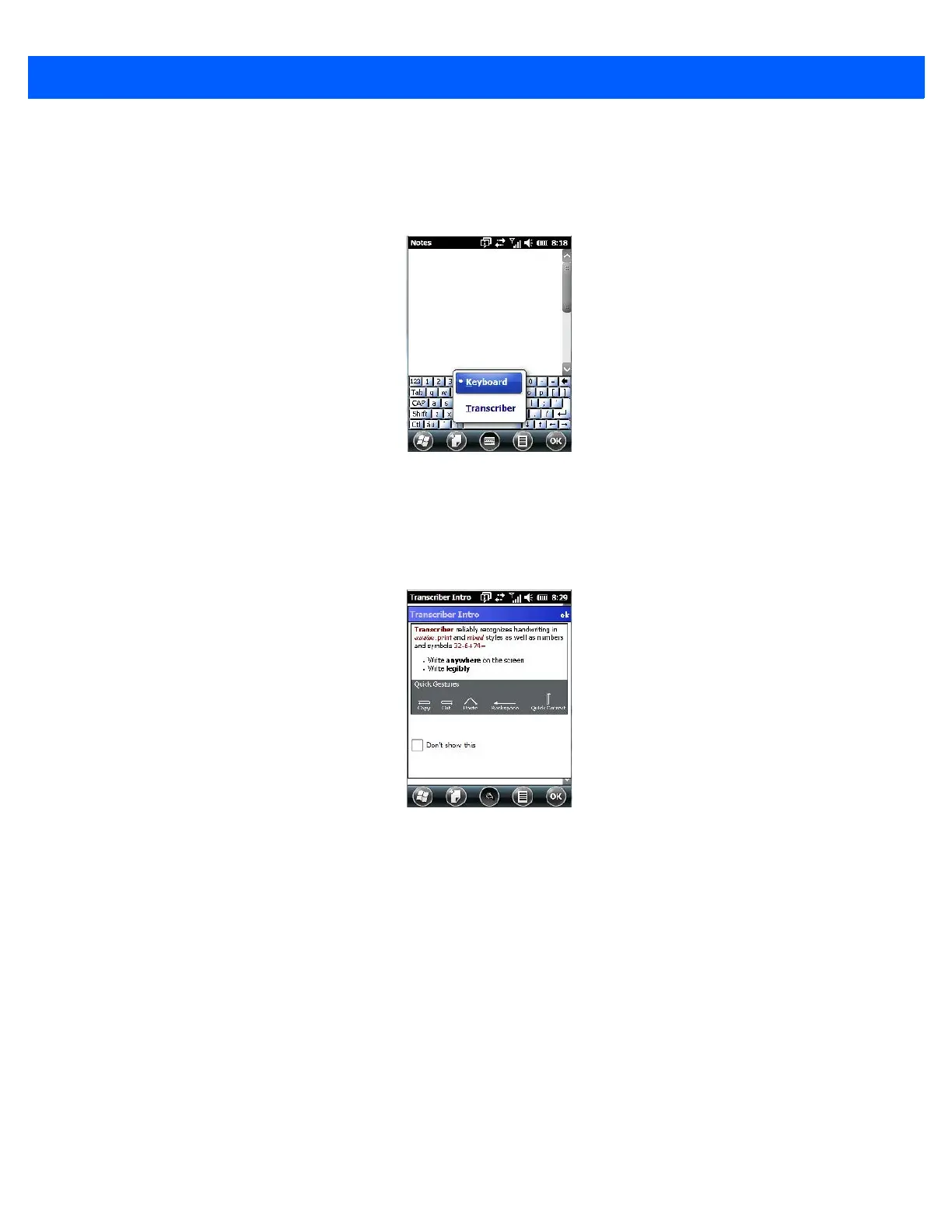 When you choose Transcriber, the soft keyboard icon changes to an icon of a hand poised to write a note.