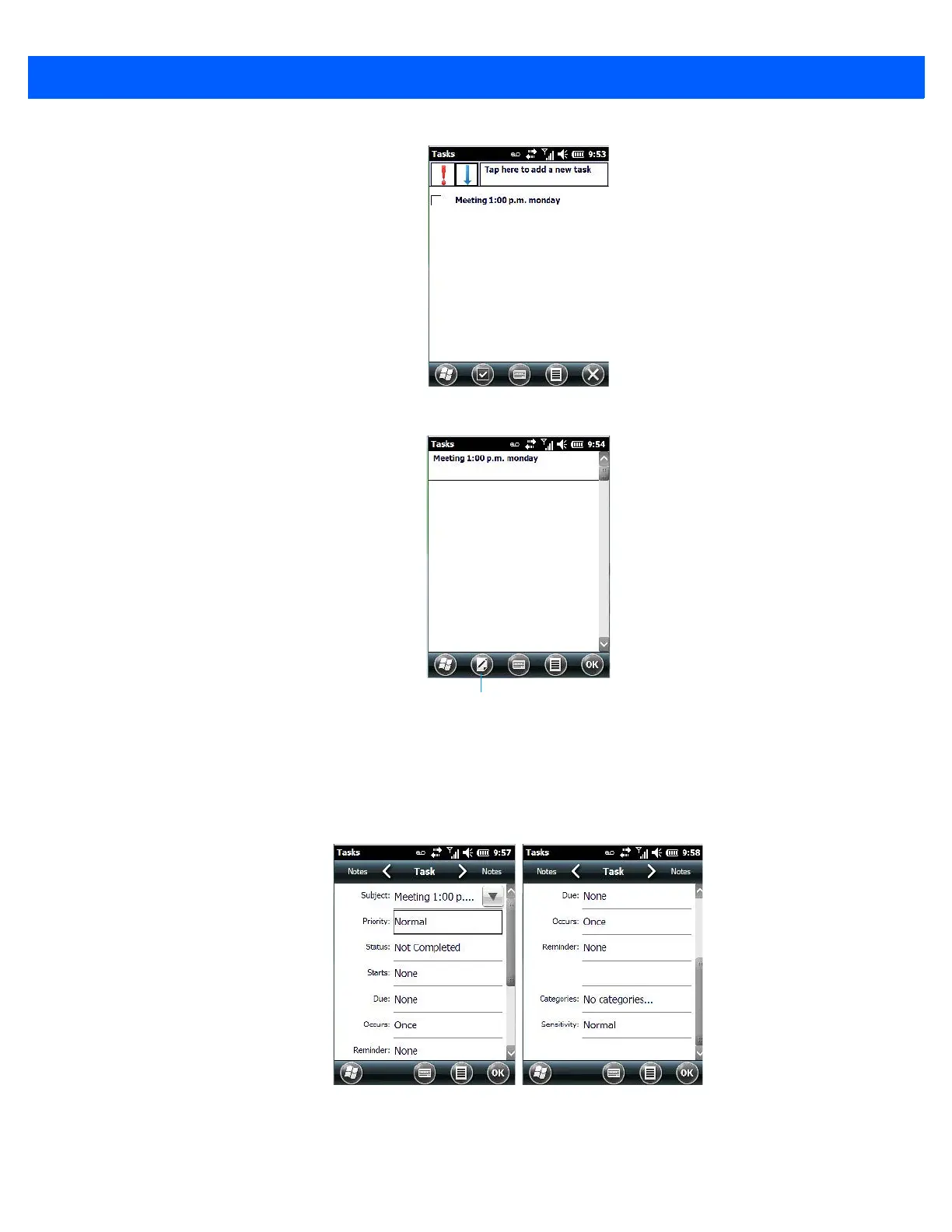 • Tap on a task in the task you want to edit. Tap on the Edit softkey in the softkey bar to display a detailed