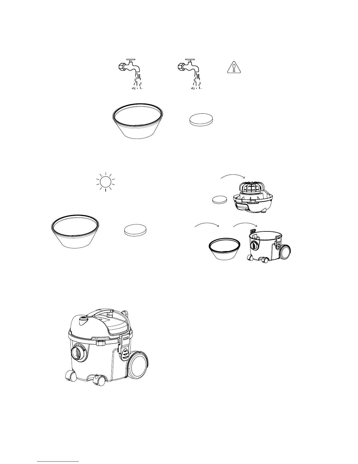 6. Dry by airing. 7. Ret the inlet lter and cloth lter.