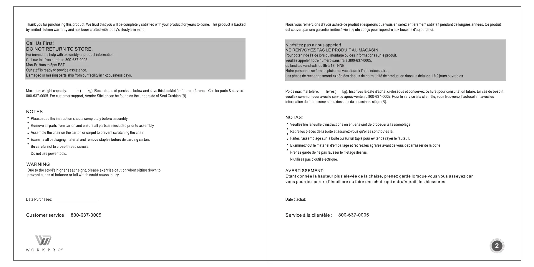 WorkPro 12000 Series - Safety Guidelines and Assembly Preparation; Important Safety Warnings; Pre-Assembly Checklist