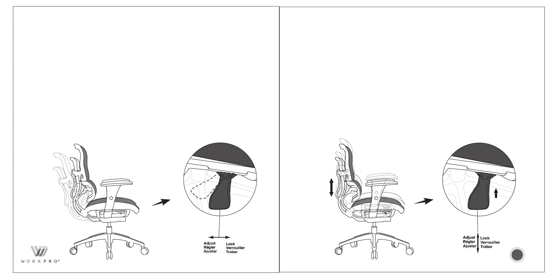 Para bloquear la silla en una posición, coloque el respaldo al ángulo deseado y vuelva a colocar