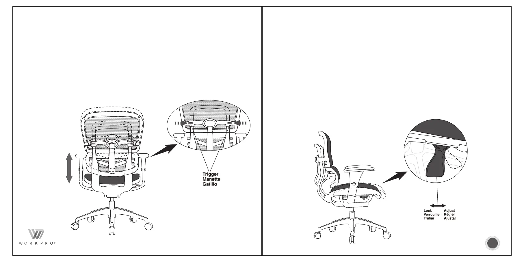 To adjust backrest & lumbar, pull upwards/downwards while holding down the lock release
