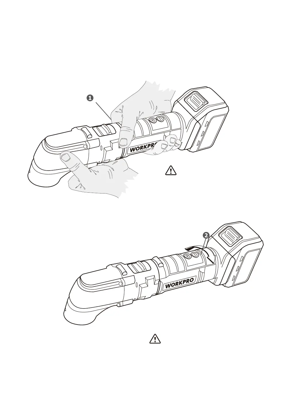 • The multi-function tool is powered up by pressing switch 1 forwards, to position “ I”.