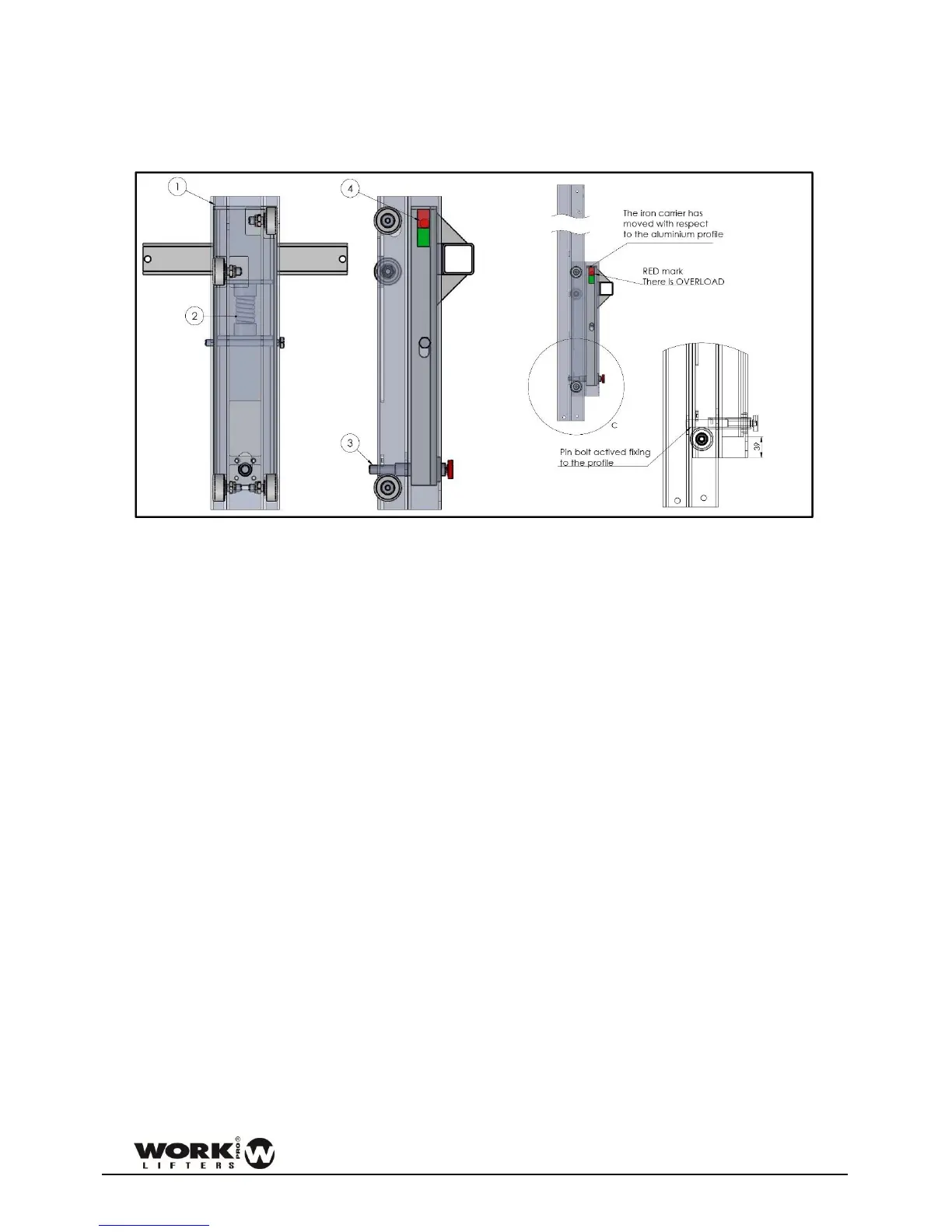 aluminum profile, blocking the tower and preventing any attempt to raise the load.