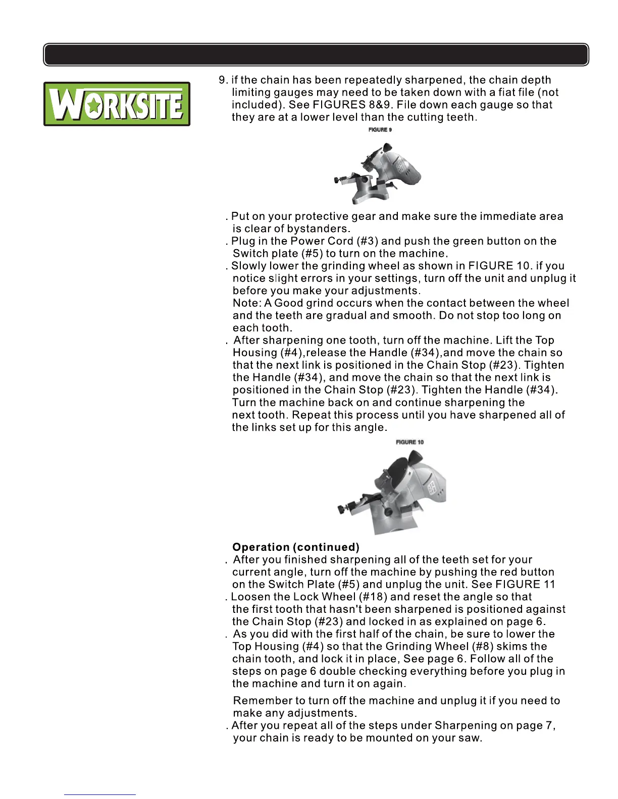 Worksite ECBS104 - Depth Limiting Gauge Adjustment; Post-Sharpening Procedures
