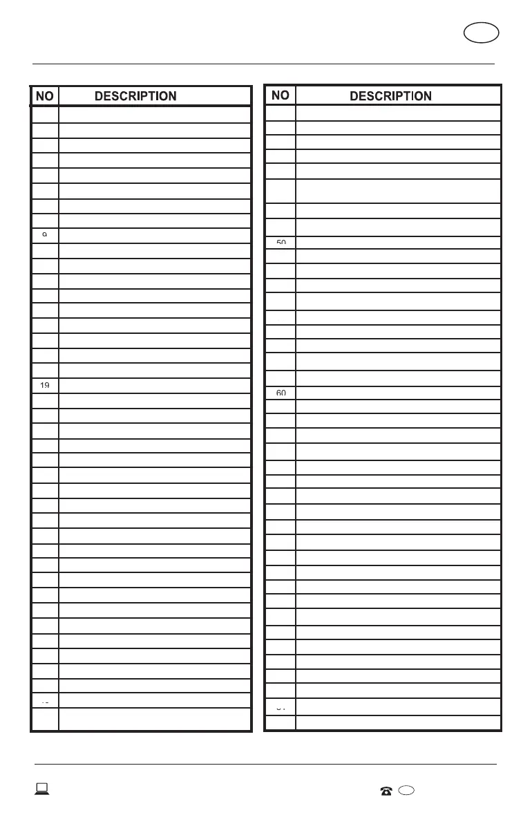 Vista desglosada y lista de piezas