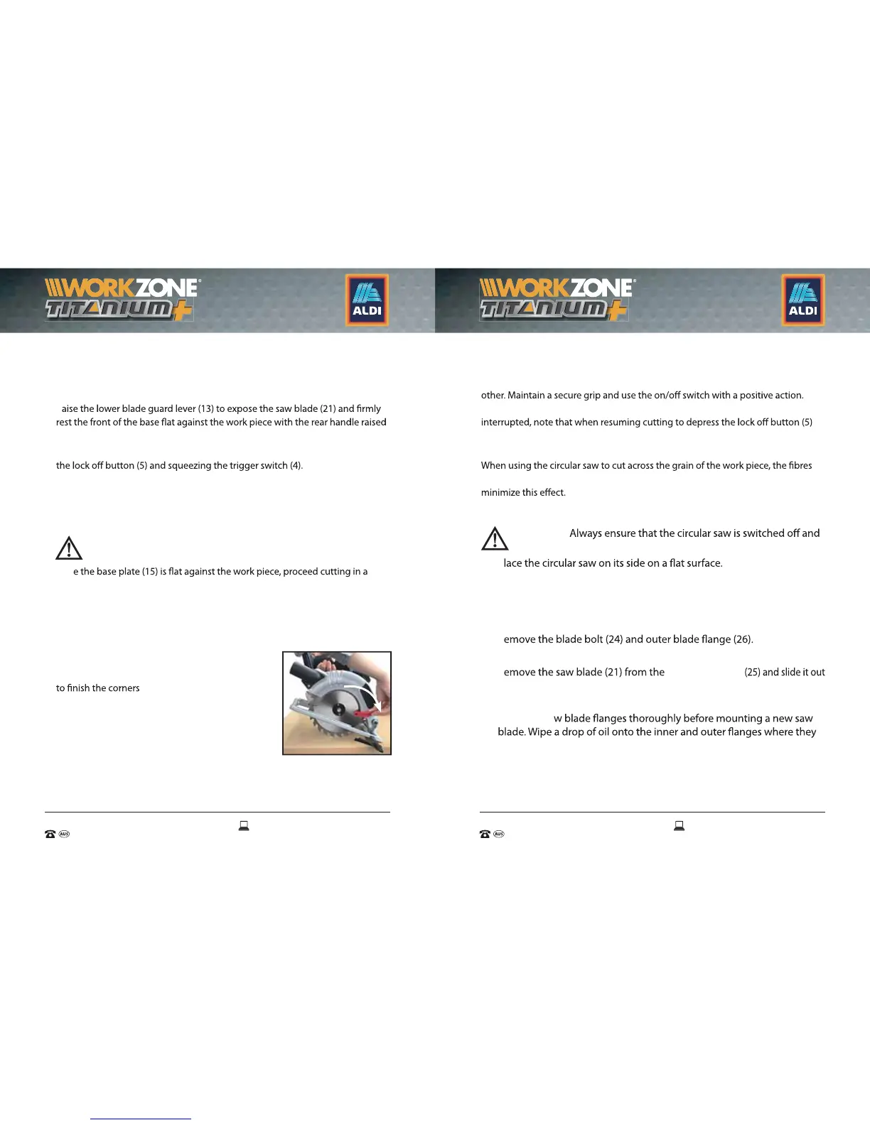 Do not remove the circular saw from the work piece while the blade (21) is